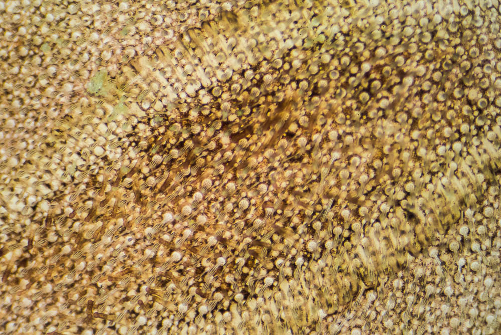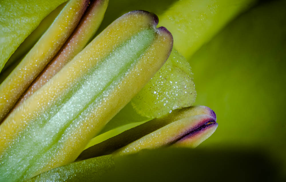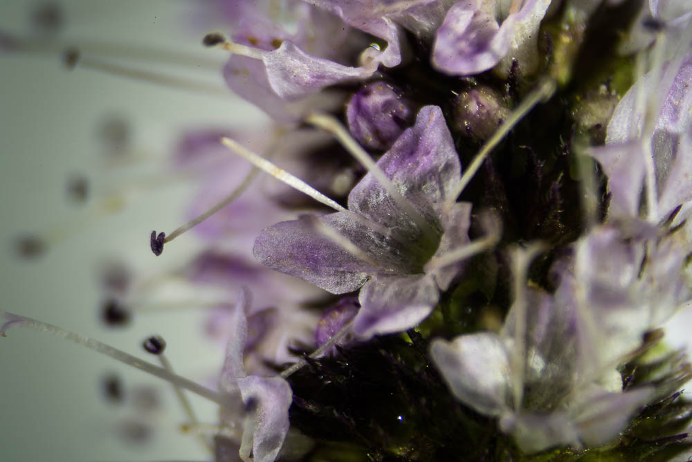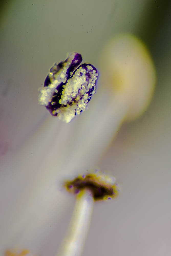 There are several challenges in this type of photography. First, controlling the light and white balance can be difficult. Another challenge, due to the extreme magnification, is that depth of field is extremely shallow. I have found good results with focus stacking, however, which provides one way of overcoming this limitation.
