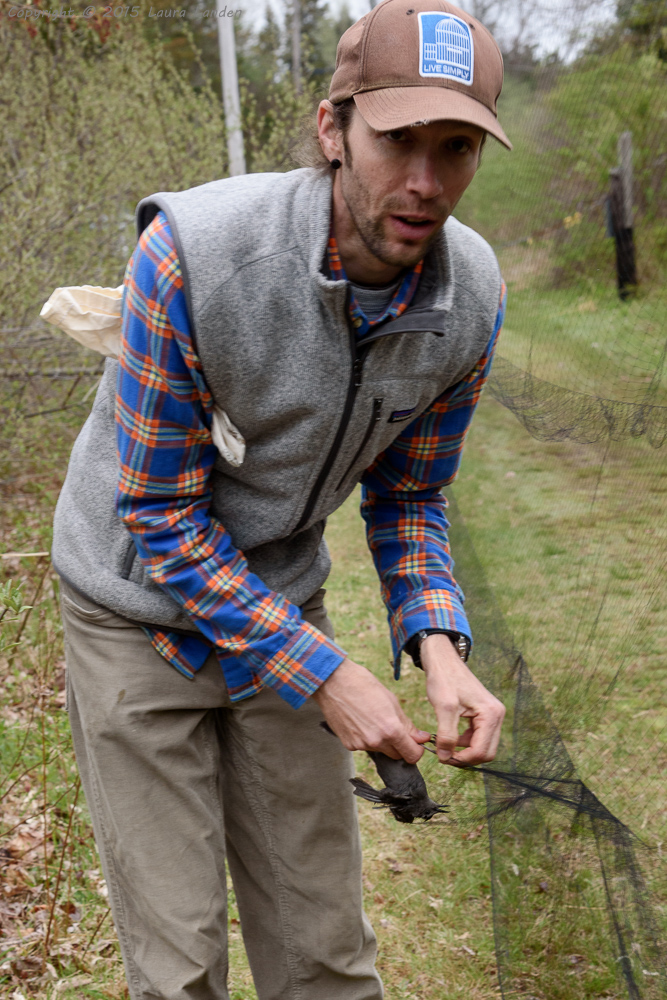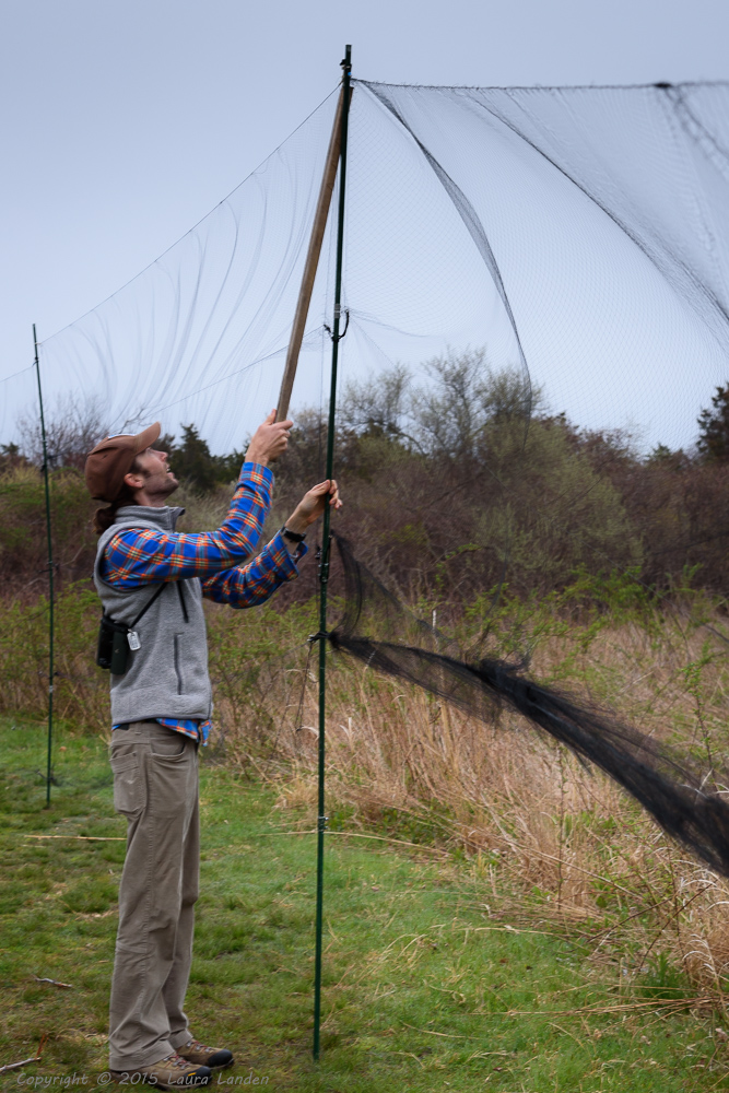 Through the Audubon Society of Rhode Island (ASRI) I enrolled this spring in a course about birds, taught by Charles Clarkson. We were treated to a wealth of information from evolution to behavior, and song to identification. This past Saturday (May 9) we were treated to a bird banding demonstration. Charlie raised the nets in Beavertail State Park in Jamestown, RI. Although the morning was relatively cool and foggy, we did have some interesting finds.