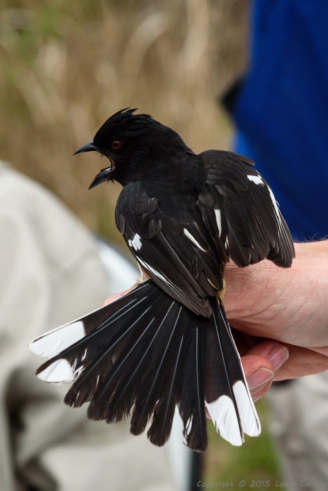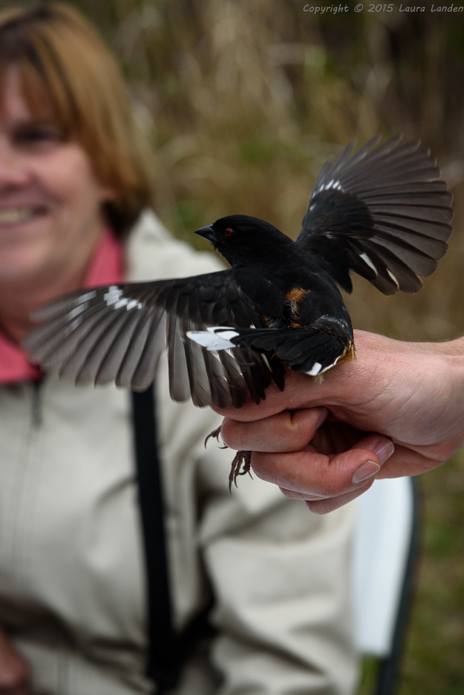 Having the birds up close and in hand provided great opportunities for photography, as well as for the tactile experience of holding a bird and allowing it to depart from your hand. Because of concern about possible transmission of avian flu from birds to humans, anyone wanting to hold and release a bird had to sign a release form.