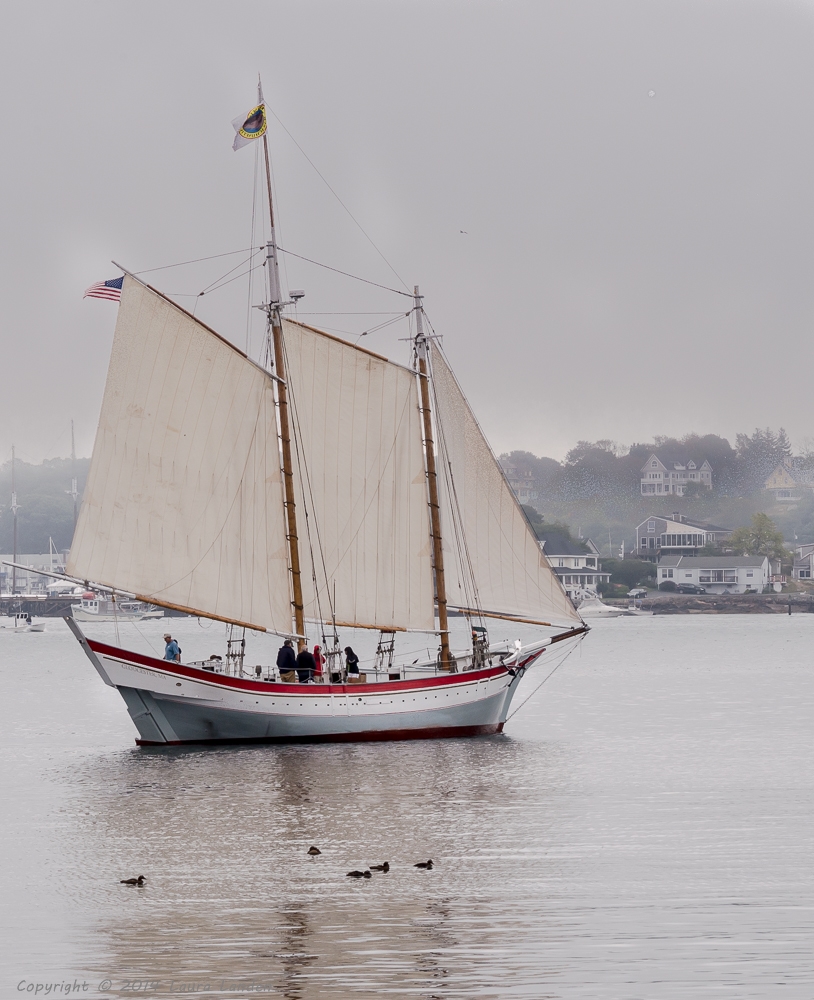 When I arrived at the harbor “The Ardelle,” a local schooner, was heading out in the fog. Later that afternoon it returned, illuminated by a brief break in the clouds. Enjoy!