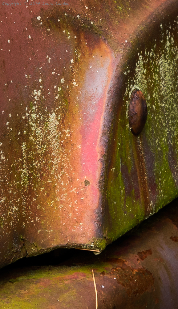 Photography is about seeing–seeing something that the photographer seeks to communicate to the viewer. One of my favorite ways of seeing photographs is as abstractions. Some photographers call this sort of image a pattern shot. I prefer abstract, as I think of it as lifting, or abstracting, the image from the original source. In my post “Found On Road, Dead” I promised some abstract images from my junkyard visit, and now is the time! Here’s a sense of how I came to see these images.